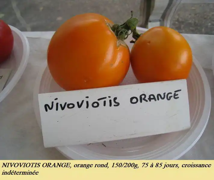 Fruit jaune orangé de 180 à 300 grammes. En bouquet de 4 à 5 fruits. Ondulation en partie haute. Dépression moyenne à l’attache pédonculaire. Plant de 110 à 120 centimètres de hauteur. 85 à 90 jours. Croissance indéterminée. Variété originaire de Corse.