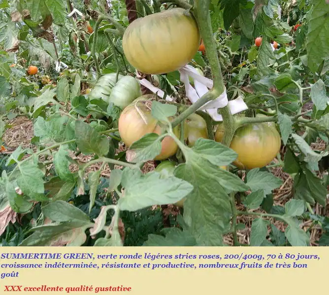 Variété récente, développée de 2006 à 2011, réalisée dans le cadre du « Dwarf Tomato Project ». Une des obtentions issue du croisement de « Golden Dwarf Champion » et « Green Giant », (Sneezy (Atchoum) F1), effectué par Patrina Nuske Small en 2006. Fruit vert et le restant à maturité, il ne développe pas une teinte ambrée comme la plupart des variétés vertes, il est sera donc nécessaire de « tâter » le fruit pour connaitre sont stade de maturation. Grande variation de calibre: de 200 à 600 grammes. Fruits de type beefsteak, aplatis avec un léger côtelage en partie haute mais deviennent de forme variable voire difforme pour les plus gros d’entre-deux. Chair charnue, juteuse et tendre parfois rose ou voilé d’un blush orange. Saveur fruitée et douce.